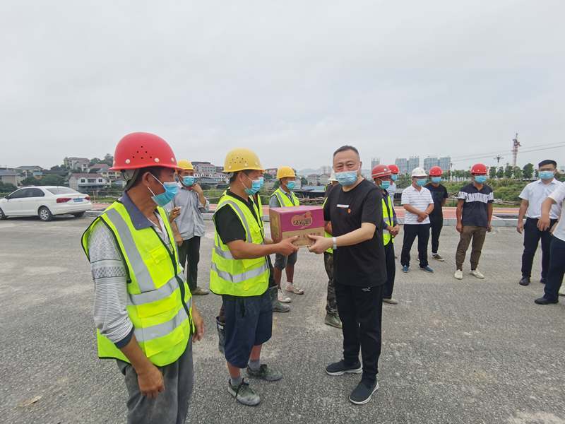 8月28日上午,懷化市城市建設(shè)投資有限公司領(lǐng)導(dǎo)班子成員帶領(lǐng)公司全體黨員(含預(yù)備黨員)、項目負責(zé)人60余人分三隊前往太平橋地下停車場、懷化職院公共實訓(xùn)基地、雙擁公園等9個在建項目的施工現(xiàn)場,結(jié)合“我為群眾辦實事”開展工地走訪慰問的志愿者活動,通過活動為一線工人送上黨的關(guān)心和問候,讓堅守在一線崗位的工人實實在在感受到黨的關(guān)懷和溫暖。