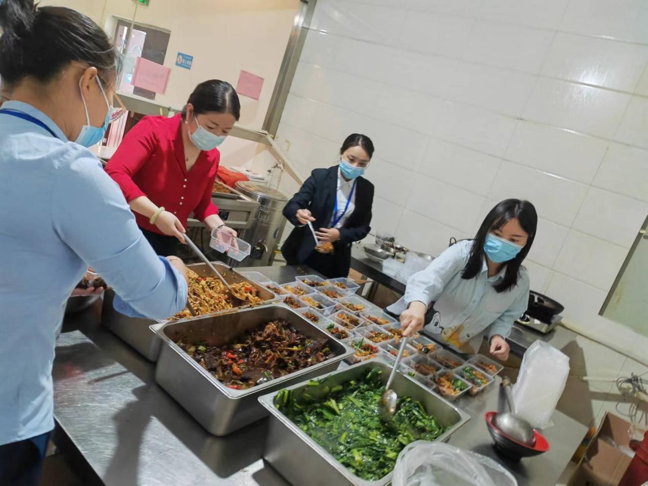 面對疫情變化,公司食堂工作人員出行受限,眼看國資系統(tǒng)抗疫人員,市城建投公司、市交建投公司包保社區(qū)志愿者、醫(yī)務(wù)人員和駐守大本營的守護者用餐無法保證時,市城建投公司領(lǐng)導(dǎo)率先垂范,帶領(lǐng)“大本營”守護者們走進食堂,紛紛化身洗菜工、切菜員、廚師、打菜員……自己動手,煮飯炒菜,打包送餐。“剛開始挺怕,壓力也大,頭一回用大型的廚房設(shè)備,挑戰(zhàn)兩三百人的用餐,心里在打鼓,怕操作不當(dāng),耽誤大家就餐,怕味道不好等,還是大家的鼓勵和齊心協(xié)力,讓我們圓滿完成任務(wù)?!焙笄诒U辖M工作人員笑道,“掌勺不易,還好最后大家都挺滿意”。