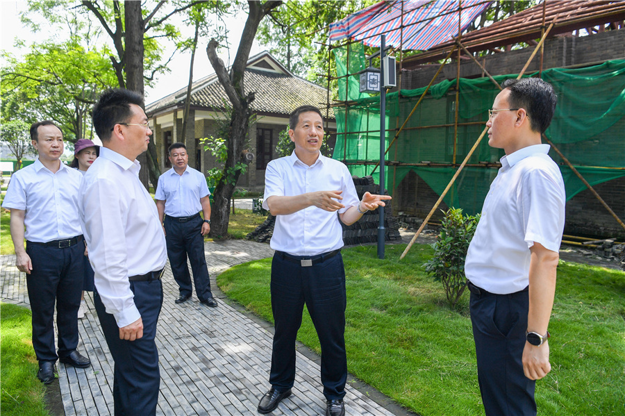 (6月13日,市委書(shū)記許忠建在洪江市、洪江區(qū)調(diào)研省旅發(fā)大會(huì)重點(diǎn)項(xiàng)目建設(shè)。圖為許忠建在洪江市安江農(nóng)耕文化旅游區(qū)了解黔陽(yáng)專(zhuān)署舊址項(xiàng)目提質(zhì)改造情況。)