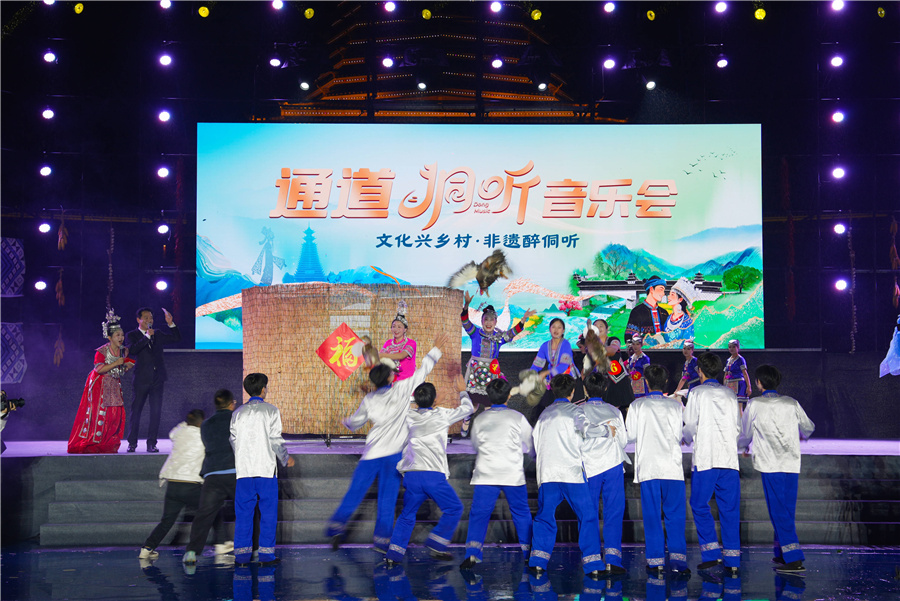 以“文藝興鄉(xiāng)村·非遺醉侗聽(tīng)”為主題的通道侗聽(tīng)音樂(lè)會(huì)在該縣薩歲文化演藝中心舉行。